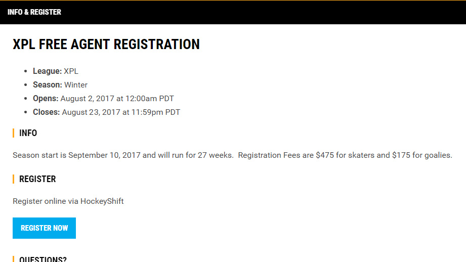 Complete registration questions and player information fields. For youth registrations: pick your age group for registrants.