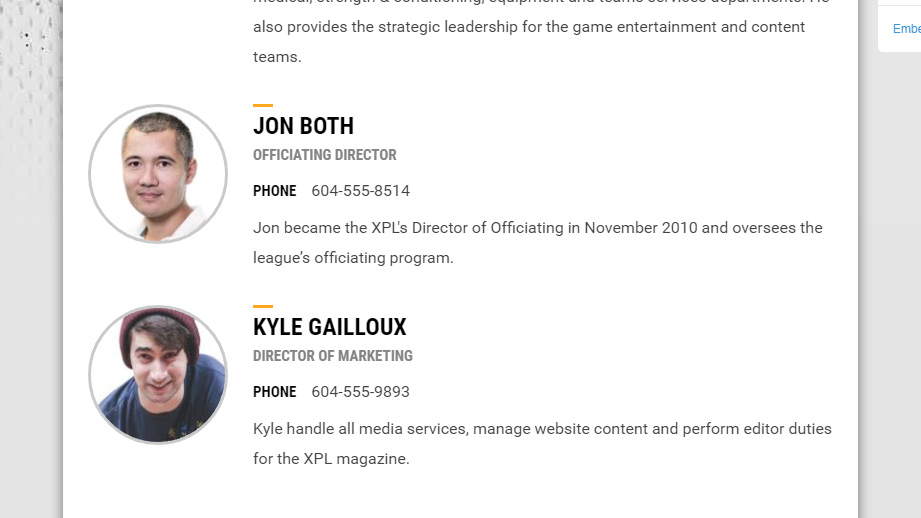 Present your staff in an organized list. Add a photo, bio, email, phone and title.